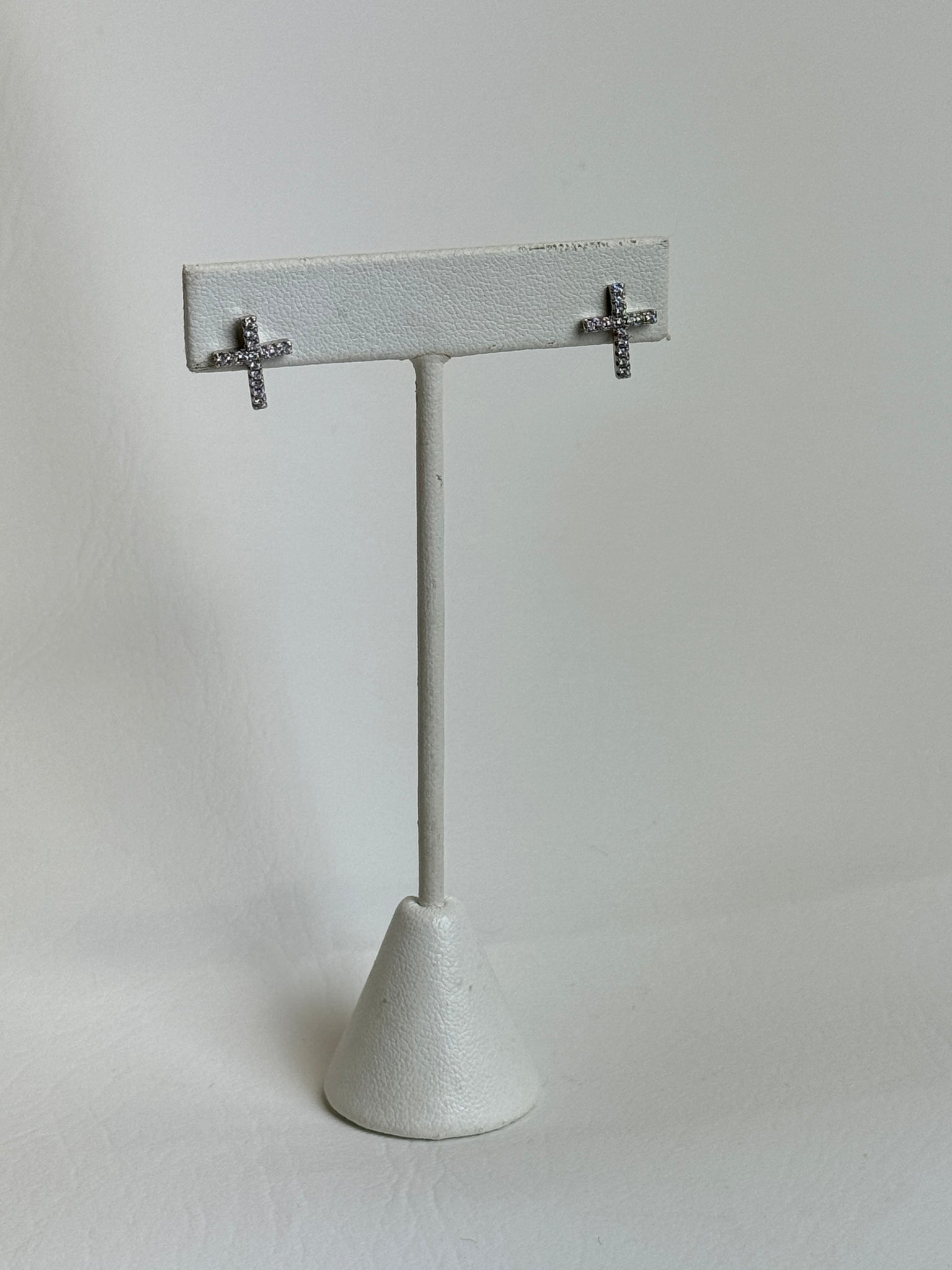 • Load image into Gallery viewer, Silver Cross Diamond Stud Earrings